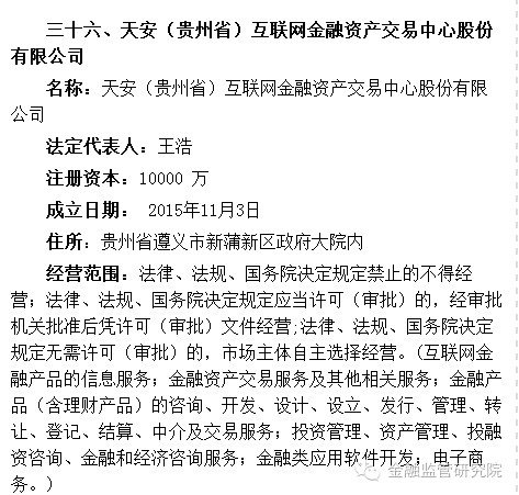 业务资质:经贵州省人民金融工作办公室批准设立的专业从事金融资产交易、投融资及其他相关金融服务的金融资产交易平台。控股股东是中天城投集团股份有限公司(股票代码000540)。